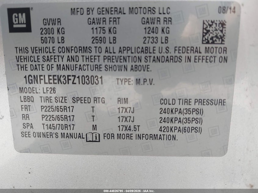 • 1GNFLEEK3FZ103031
