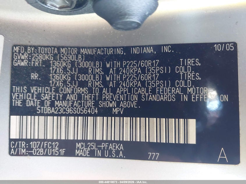 • 5TDBA23C96S056404