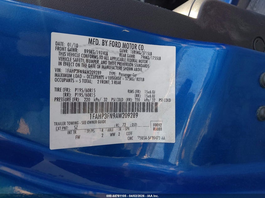 • 1FAHP3FN9AW209289