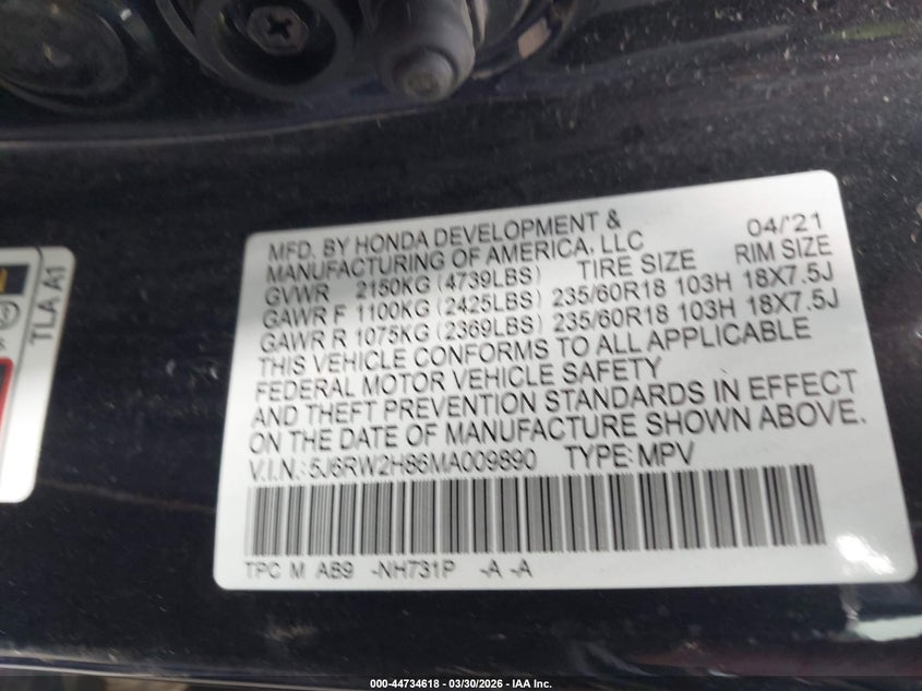 • 5J6RW2H86MA009890