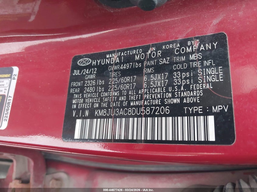 • KM8JU3AC8DU587206