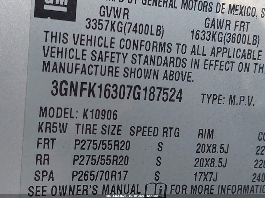 • 3GNFK16307G187524
