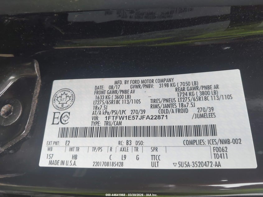 • 1FTFW1E57JFA22871