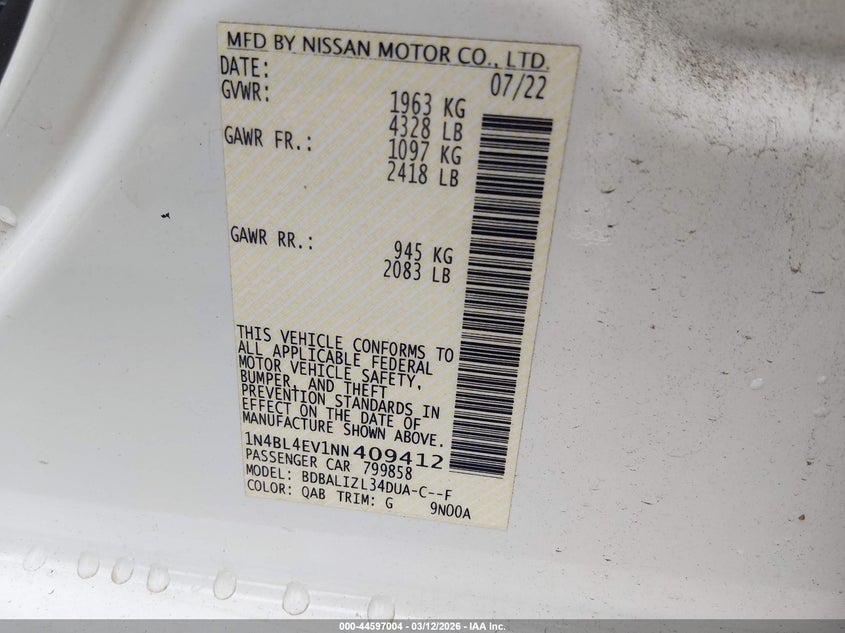 2022 NISSAN ALTIMA SL FWD for Sale in Simpsonville, SC