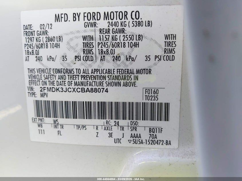 • 2FMDK3JCXCBA88074