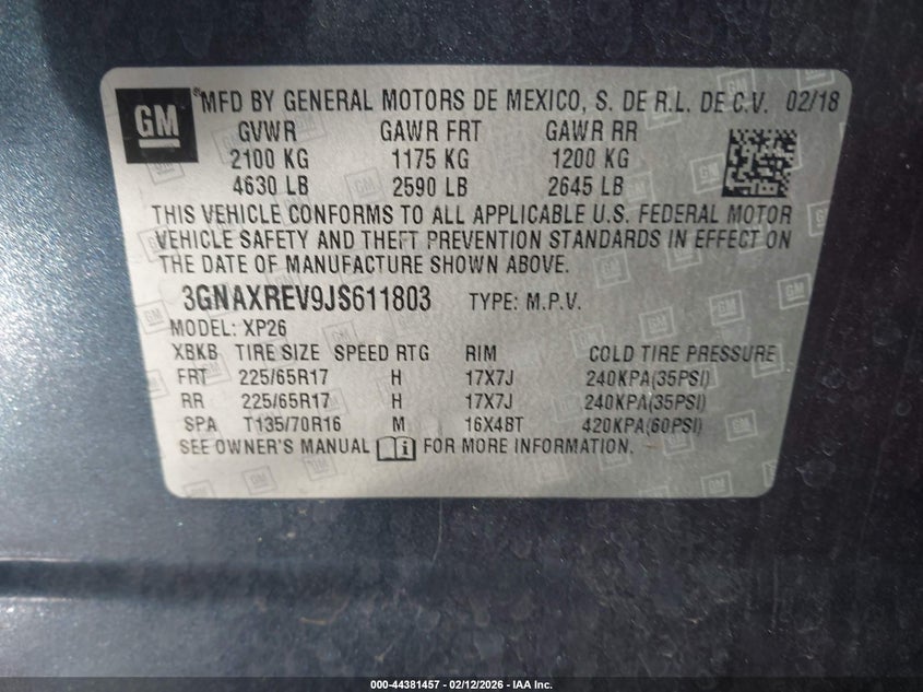• 3GNAXREV9JS611803