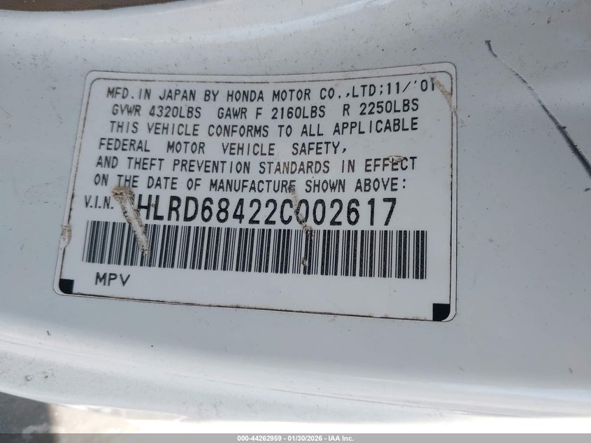 • JHLRD68422C002617