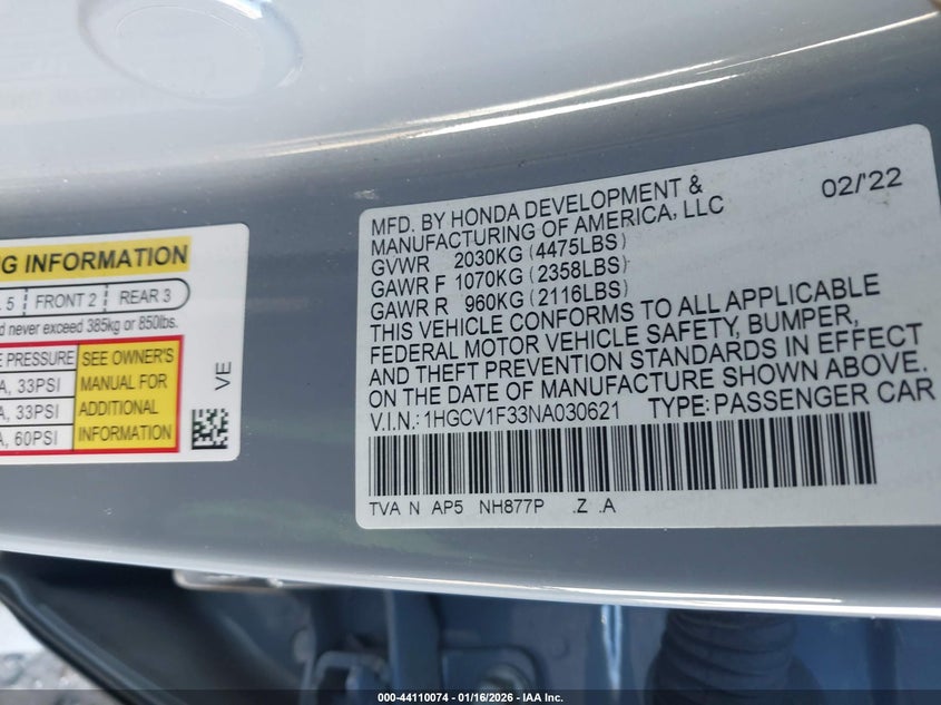 • 1HGCV1F33NA030621