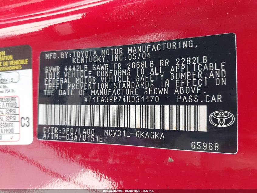 • 4T1FA38P74U031170