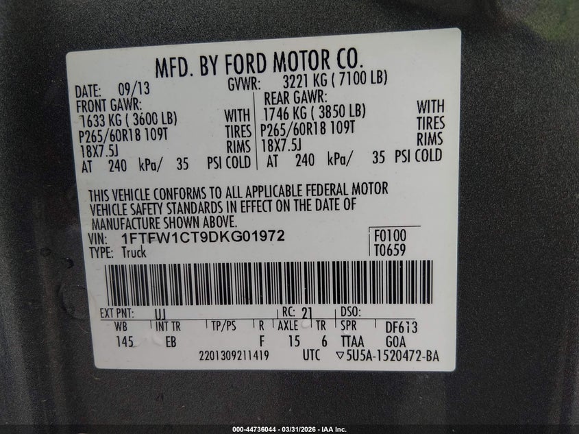 • 1FTFW1CT9DKG01972