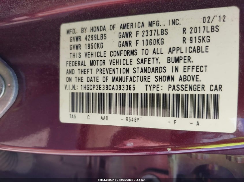 • 1HGCP2E39CA093365