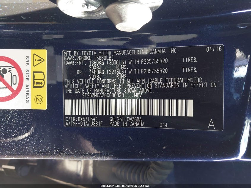 • 2T2BZMCA2GC030333