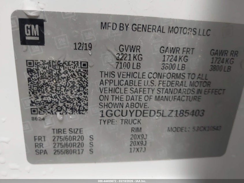 • 1GCUYDED5LZ185403