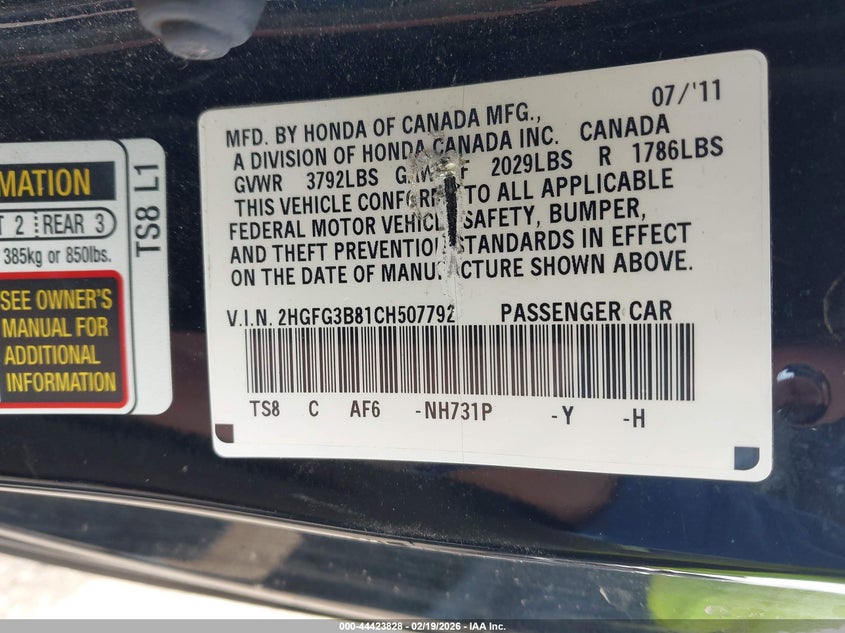 • 2HGFG3B81CH507792