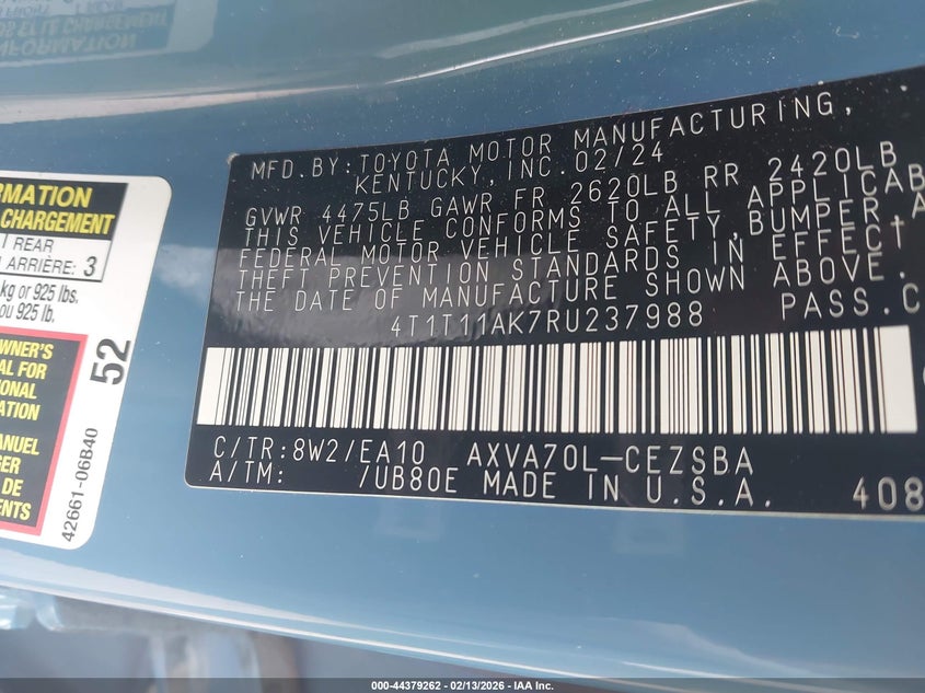 • 4T1T11AK7RU237988