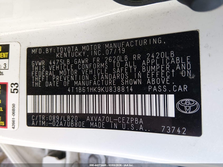 • 4T1B61HK9KU838814
