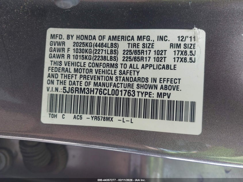 • 5J6RM3H76CL001763