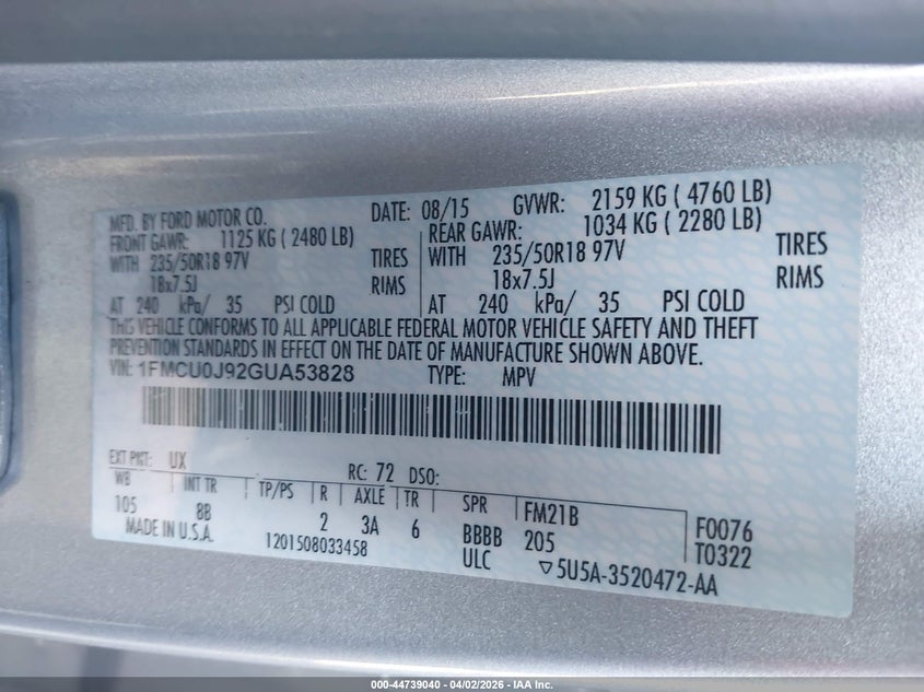 • 1FMCU0J92GUA53828