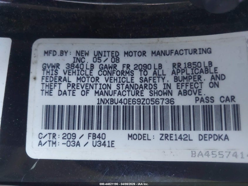 • 1NXBU40E69Z056736