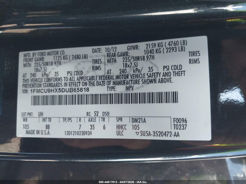 • 1FMCU9HX5DUB65818
