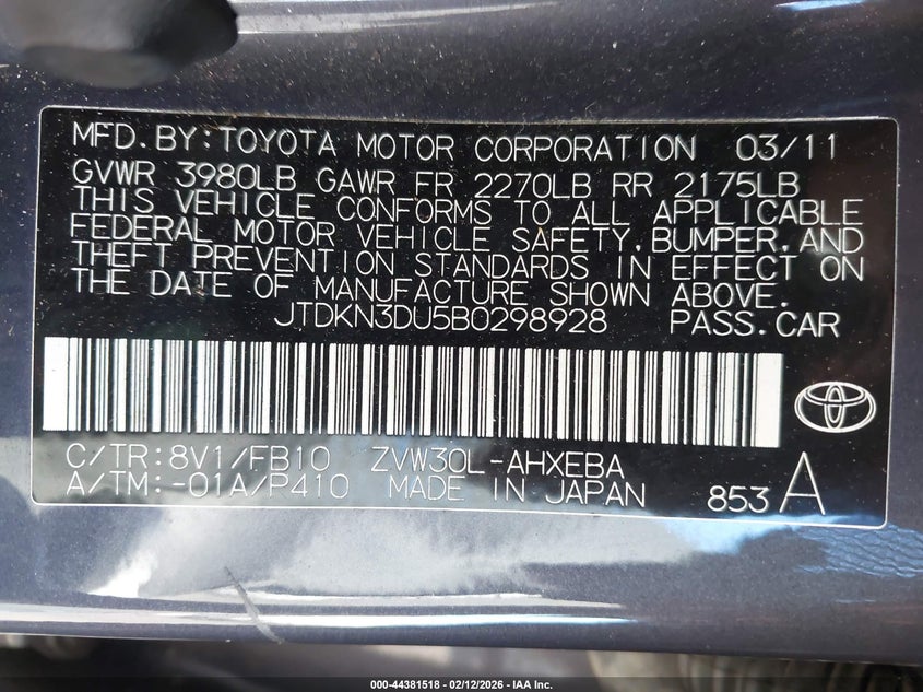 • JTDKN3DU5B0298928