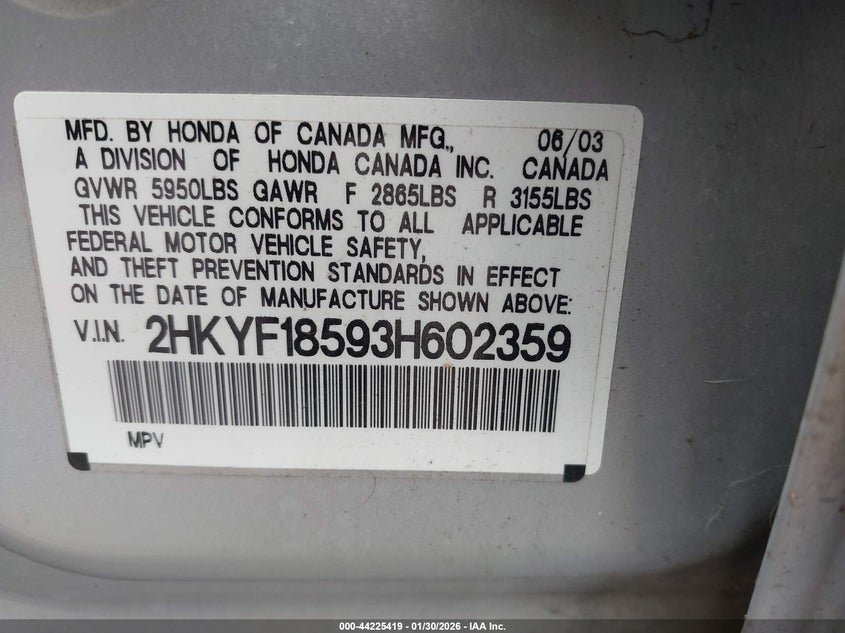 • 2HKYF18593H602359