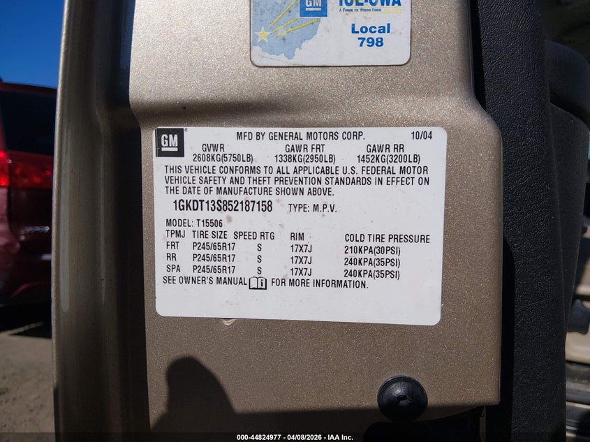 • 1GKDT13S852187158