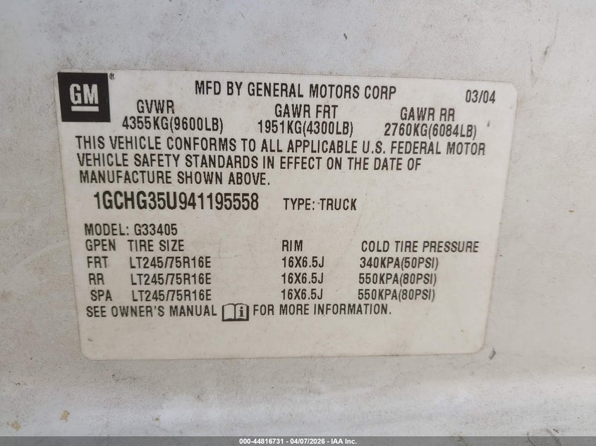 • 1GCHG35U941195558