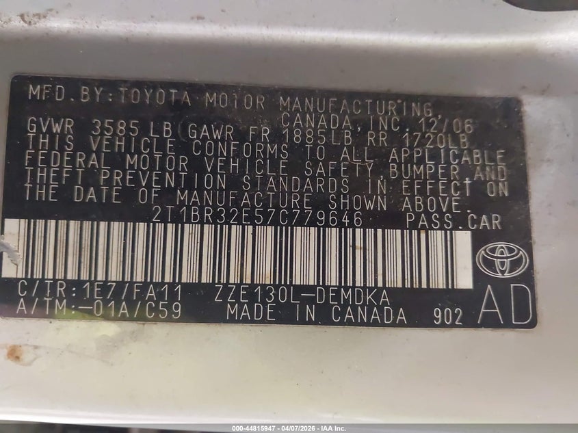 • 2T1BR32E57C779646