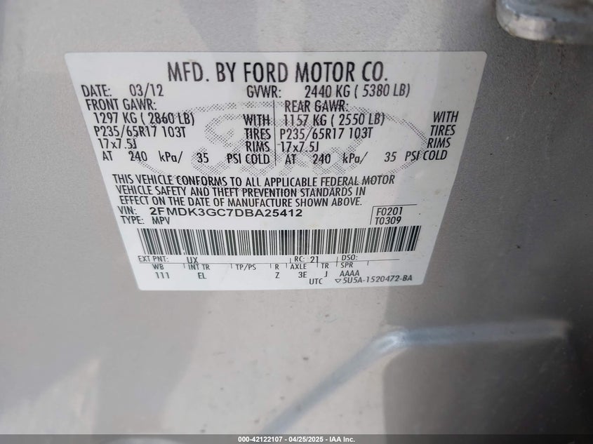 • 2FMDK3GC7DBA25412