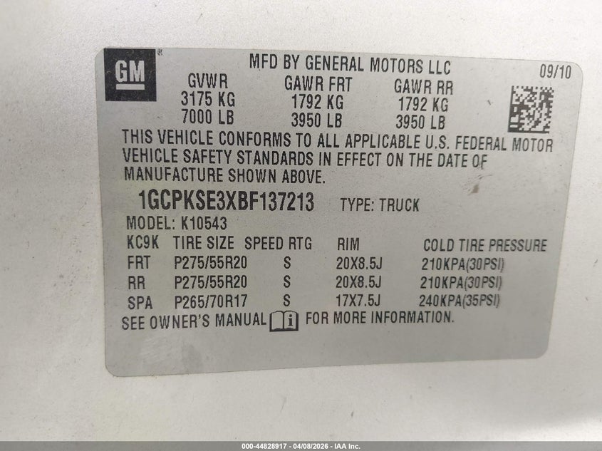 • 1GCPKSE3XBF137213