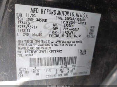 • 1FTRW12W14KB78782