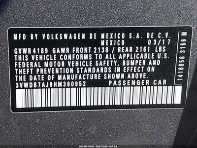 • 3VWDB7AJ9HM360952