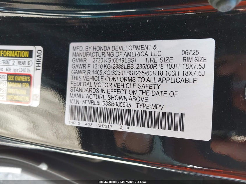 • 5FNRL6H63SB085995
