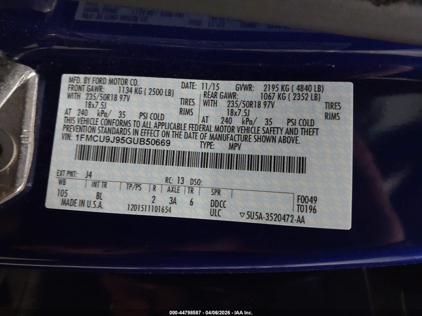 • 1FMCU9J95GUB50669