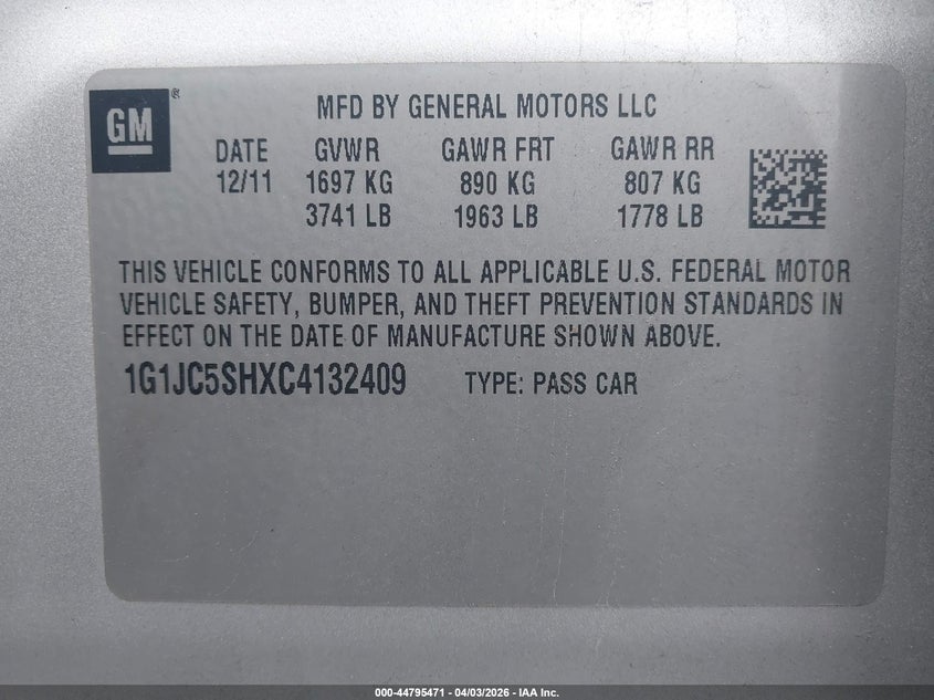 • 1G1JC5SHXC4132409