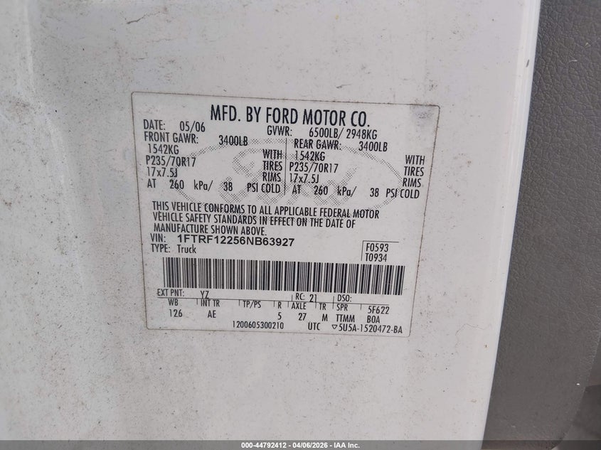 • 1FTRF12256NB63927