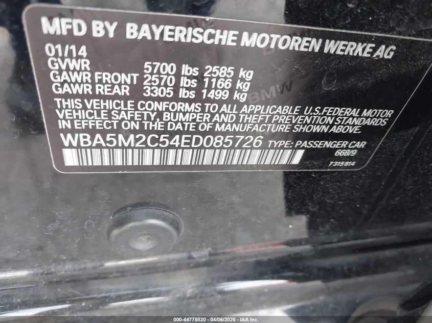 • WBA5M2C54ED085726