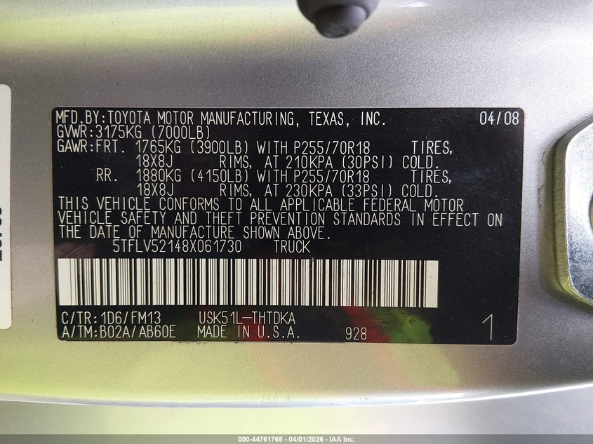 2008 TOYOTA TUNDRA BASE 5.7L V8 for Sale in Grove City, OH