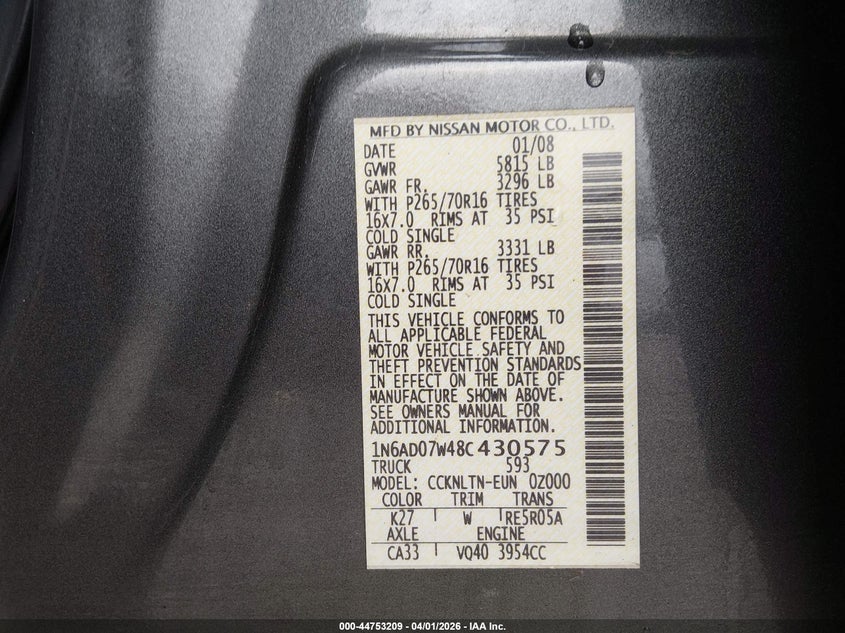 2008 NISSAN FRONTIER SE for Sale in Grove City, OH