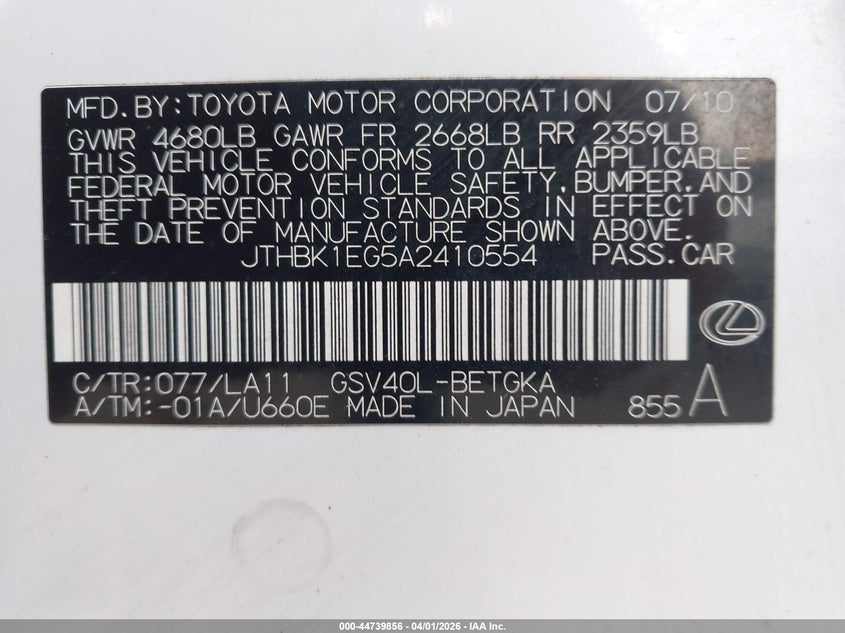 • JTHBK1EG5A2410554