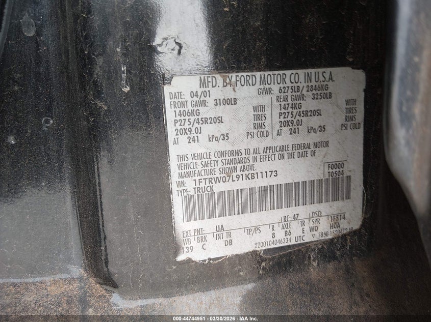 • 1FTRW07L91KB11173