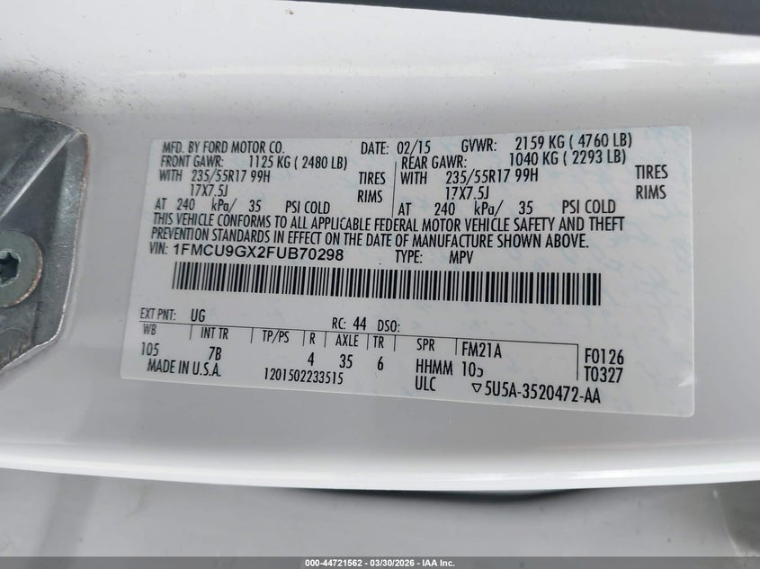 • 1FMCU9GX2FUB70298