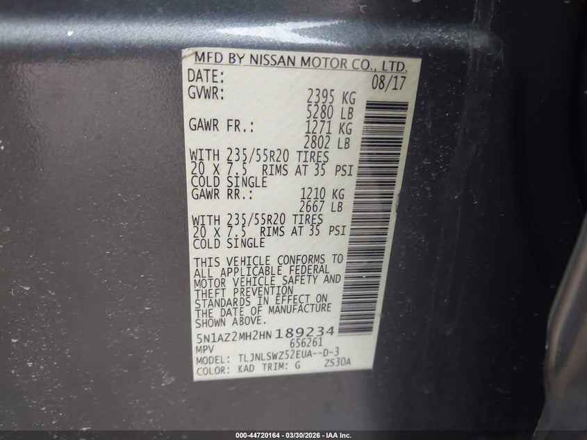 • 5N1AZ2MH2HN189234