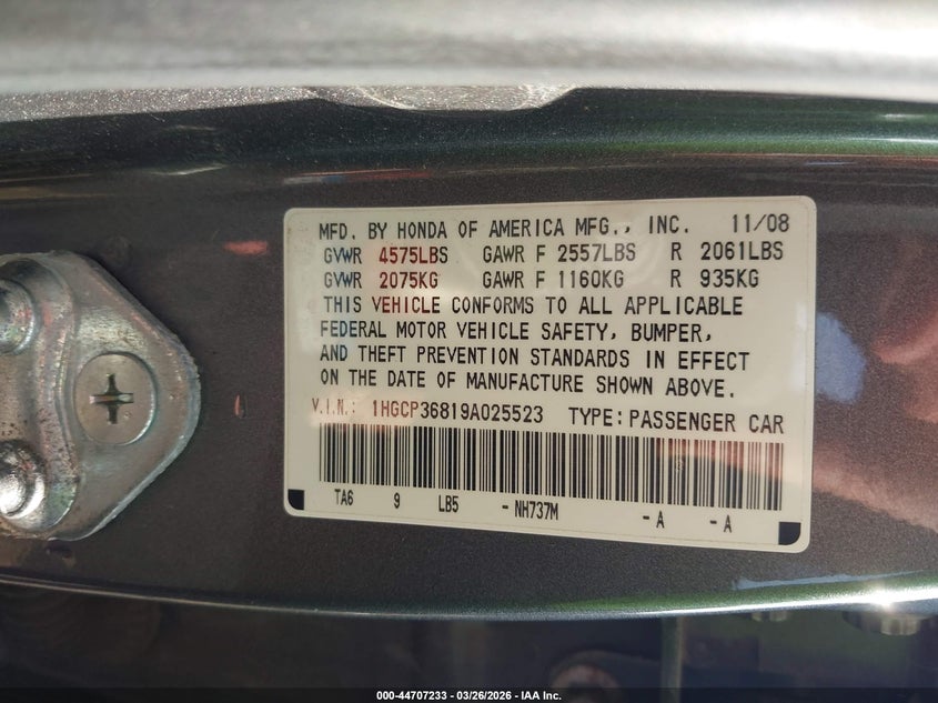 • 1HGCP36819A025523