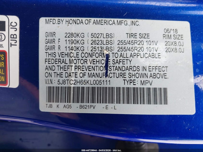 • 5J8TC2H65KL005111