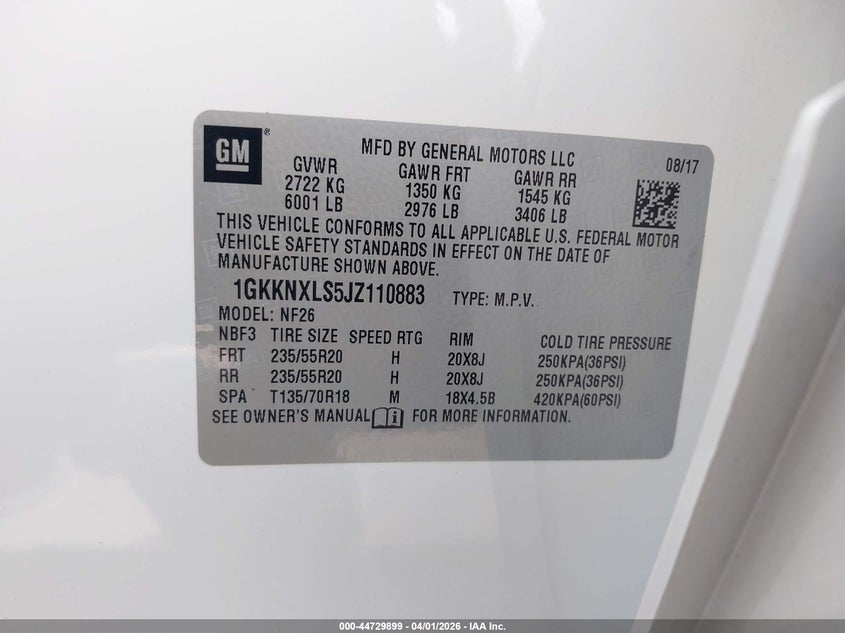 • 1GKKNXLS5JZ110883