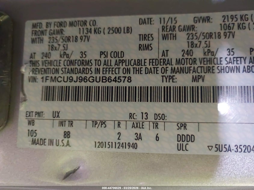 • 1FMCU9J96GUB64578