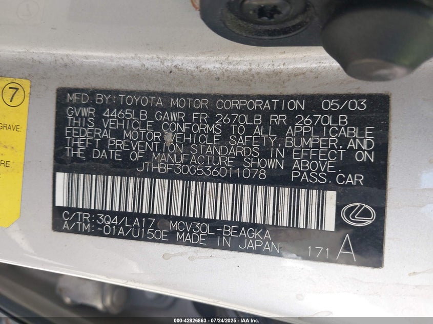 • JTHBF30G536011078