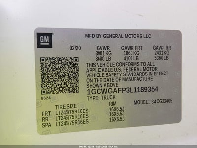2020 CHEVROLET EXPRESS CARGO RWD 2500 REGULAR WHEELBASE WT for Sale in Grove City, OH